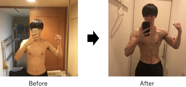 上の写真は半年間ボリュームをしっかりと意識して筋トレを行った時の体の変化です!!まるで別人ですね!