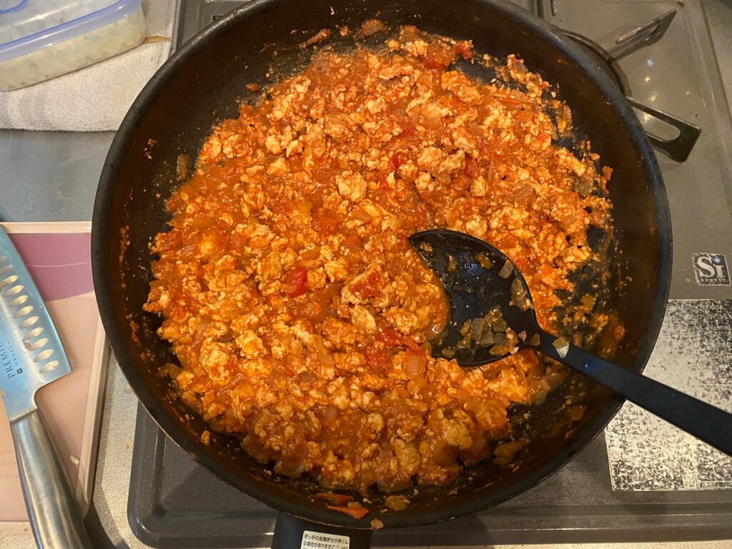 ミキサーにかけた方がタコライスっぽくなるのですがなければ、細かくするだけでも美味しく作れます!