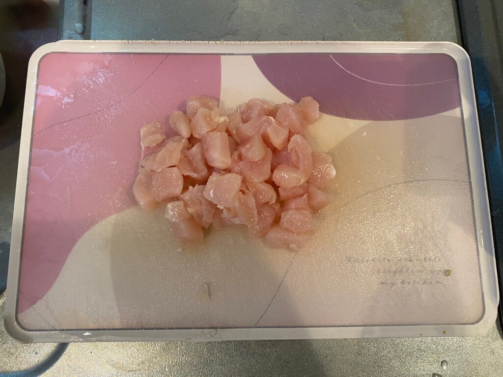 ②胸肉を食べやすく切る。(ミキサーにかけても◯)